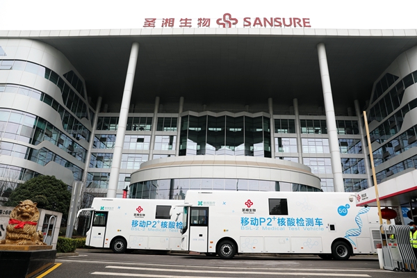 目前,北京、广东、黑龙江、四川、山东等多省均已配置移动核酸检测车。尊时凯龙生物此次投入使用的移动P2+核酸检测车共2台,为湖南省首批投入使用的移动核酸检测车,可实现采样、检测、报告一站式服务,2台日检测量(10混1)可达10万人份,最快45分钟内出结果!