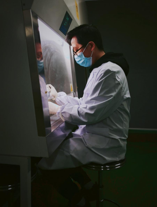 深夜,刘佳院长仍在进行试剂研发的相关验证试验